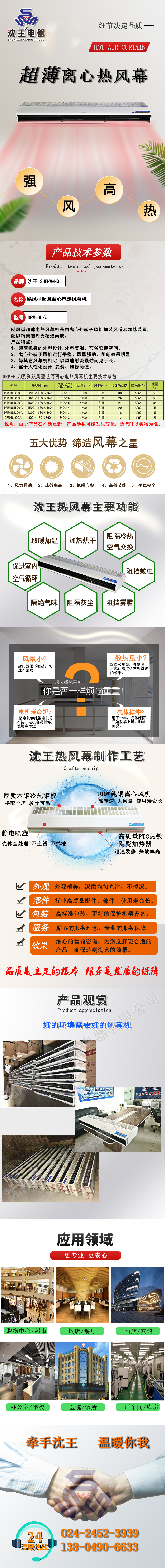 簡介:飓风型超薄电热风幕机是由离心外转子风机加装风道和加热装置,配以精美的外壳精致而成。超薄机身,风量强劲,阻断效果明显。
